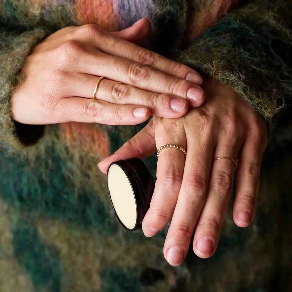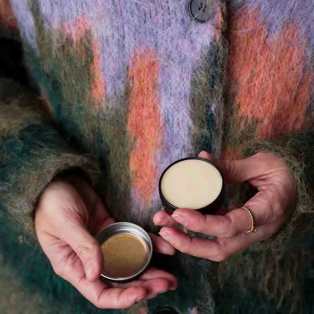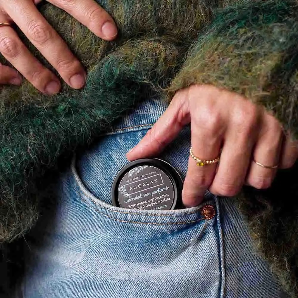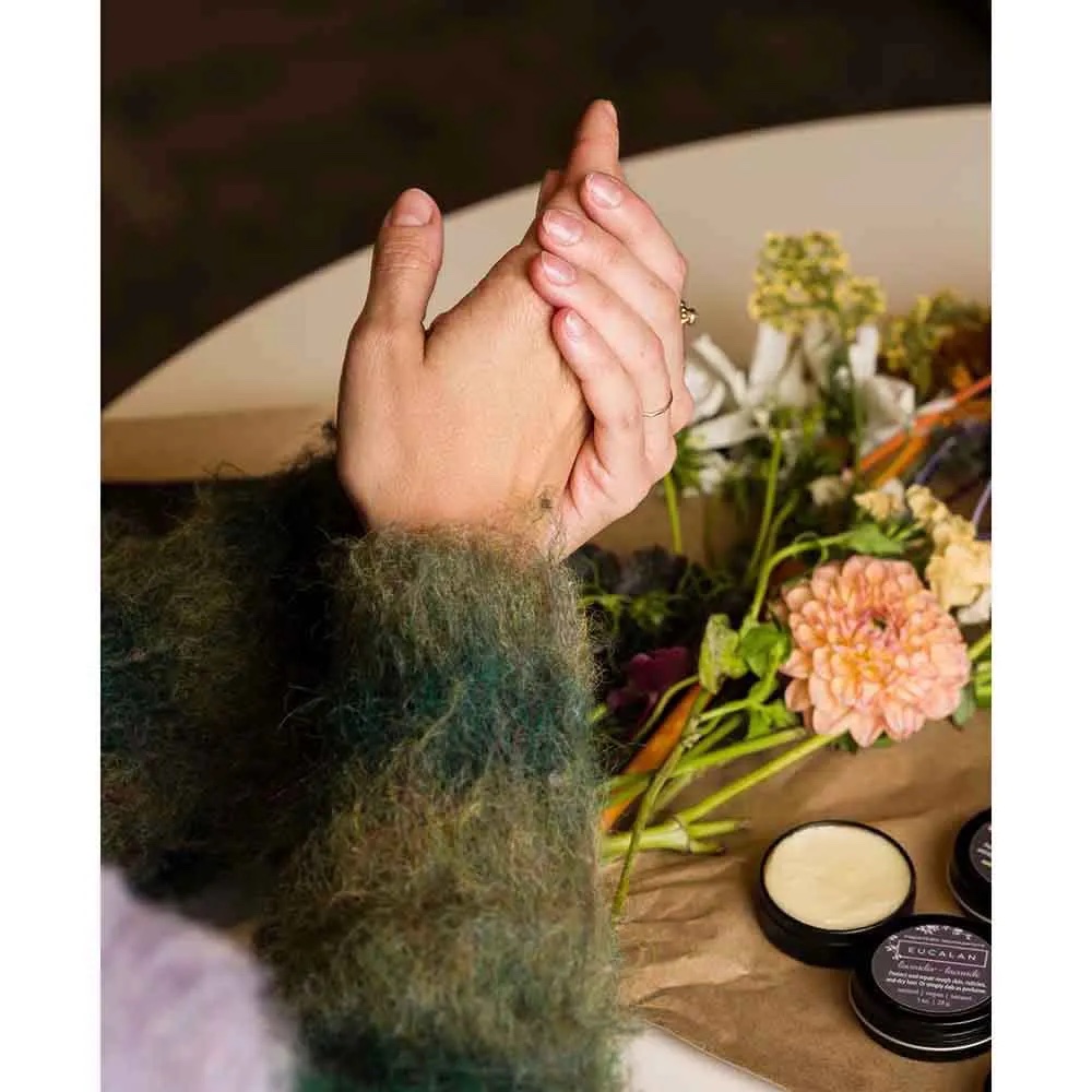Deze hydraterende handbalsem van Eucalan is een weldaad voor de huid. De natuurlijke formule biedt direct verlichting bij een droge en gebarsten huid en heeft een langdurig hydraterende werking. Droge handen ontstaan vaak in de herfst en winter door grote temperatuurverschillen. Droge huid en kloofjes kunnen vervelend zijn tijdens het handwerken: garens en stoffen voelen dan onprettig aan. Met de Eucalan balsem kan je onbezorgd je favoriete bezigheden uitvoeren, met zachte handen. Je kan de balsem natuurlijk ook aanbrengen op andere droge plekken, zoals uw ellebogen of voetzolen. De balsem is volledig vegan en handig verpakt in een klein zwart blikje, dat je gemakkelijk in je tas stopt en zo overal mee naartoe kan nemen. De subtiele geuren zijn afkomstig van essentiële oliën, die Eucalan ook gebruikt in het bekende wolwasmiddel.