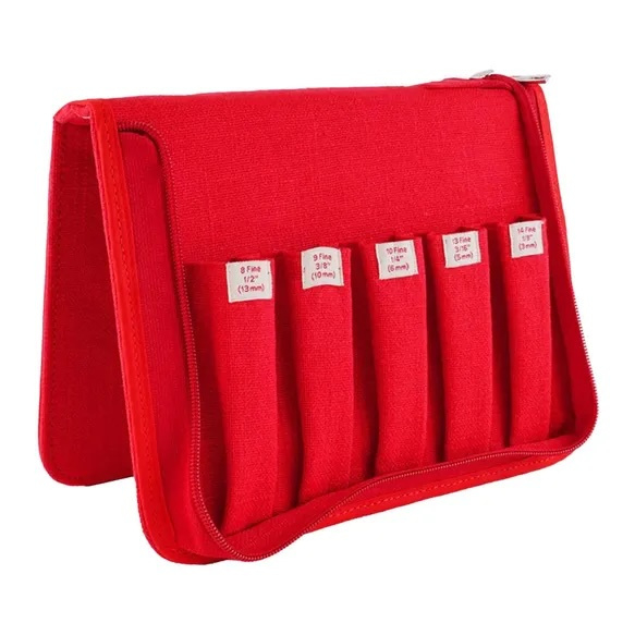 Het Oxford punchnaaldenetui is een prachtig etui van katoen met 11 vakjes voor het opbergen van punchnaalden en accessoires. Het rechthoekige etui sluit rondom met een rits en een drukknoop. Het open etui kun je daarnaast gebruiken als handige naaldenstandaard. Verkrijgbaar in twee verschillende kleuren. Het etui wordt zonder inhoud geleverd.